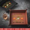 Add Your Personal Touches: you’re enabled to customize your name, rank, rating, etc. to have them printed on the Personalized Leather Valet Tray.