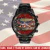 Customize your Black Stainless Steel Watch with your name, rank, and years of service for a truly one-of-a-kind timepiece. This personalized feature allows you to showcase your military journey with pride and distinction.