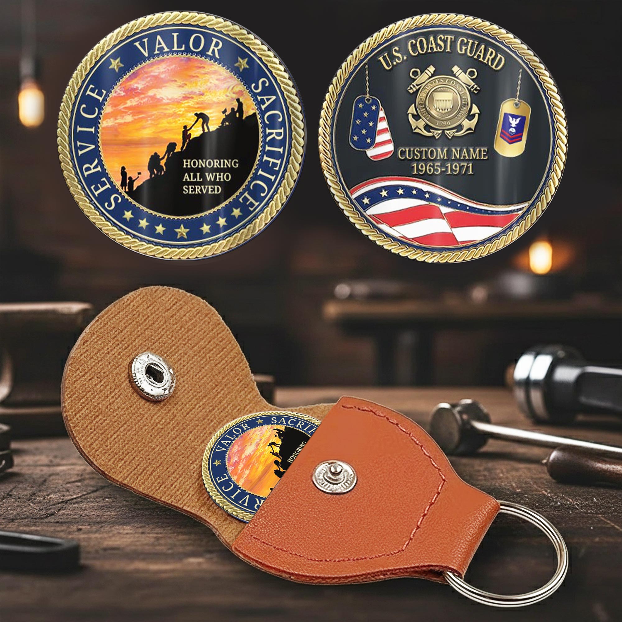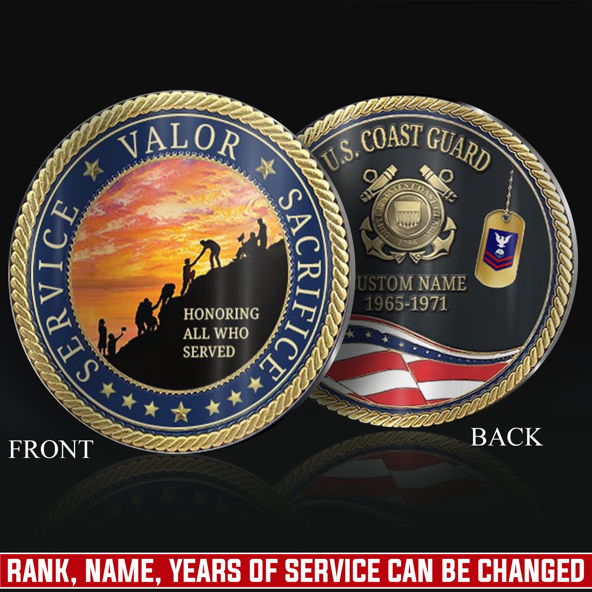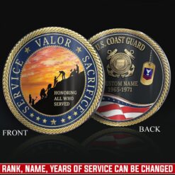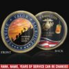 Honor Their Service: customize with veteran’s name, achieved rank, service branch, assigned unit, career specialty, or total years served on both coin faces.