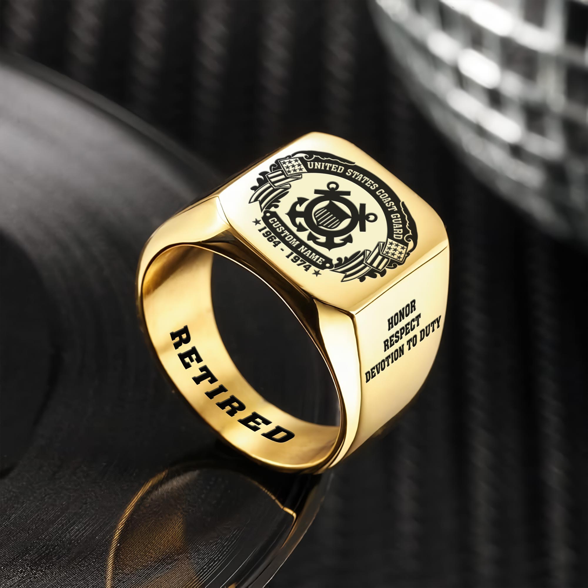 You’re enabled to customize your name, rank, rating, etc. to have them printed on the personalized engraved men’s ring. Make it uniquely yours by incorporating elements that celebrate your military identity and legacy.