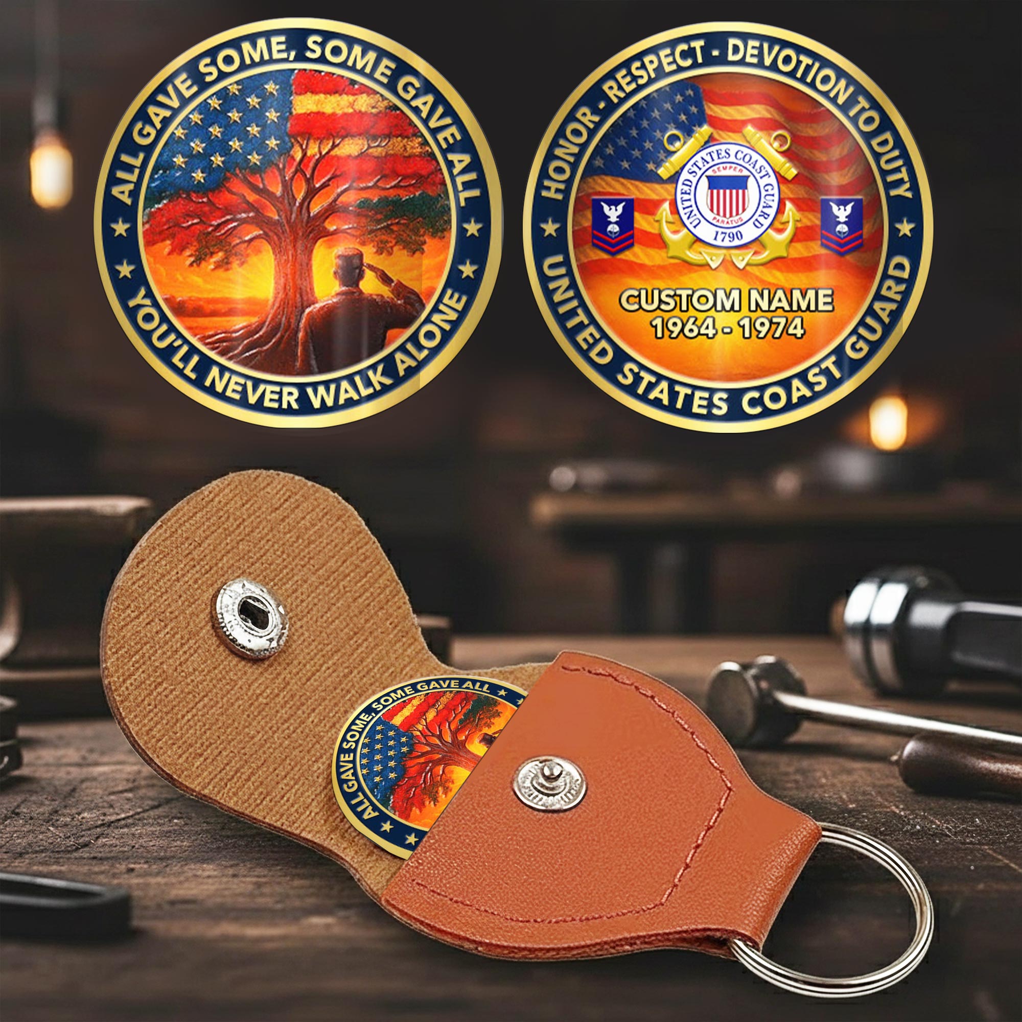 Crafted to honor those who serve, the Military Challenge Coin is a timeless tribute to military excellence. Precision-printed on both sides from premium stainless steel and housed in a protective PU leather case—symbolizing strength, discipline, and legacy.