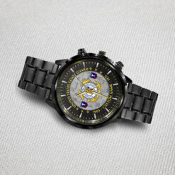 Personalize your Black Stainless Steel Watch with custom engravings of your name, rank, and years of service. This thoughtful addition transforms your watch into a cherished memento, honoring your dedication and commitment to service.