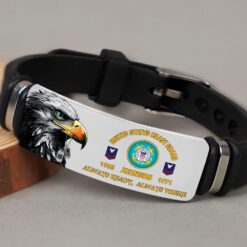 Incorporating an adaptive strap mechanism, the bracelet transcends traditional sizing limitations. It emerges as a profound tribute to veterans, symbolizing dedication, service, and the enduring spirit of patriotism.
