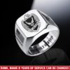 You’re enabled to customize your name, rank, rating, etc. to have them printed on the personalized engraved men’s ring. Transform this piece into a personal memorial of your service and accomplishments.
