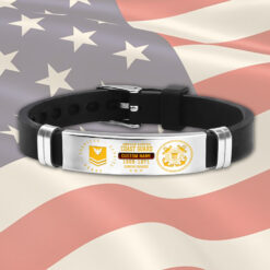 Incorporating an adaptive strap mechanism, the bracelet transcends traditional sizing limitations. It emerges as a profound tribute to veterans, symbolizing dedication, service, and the enduring spirit of patriotism.