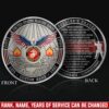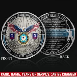 Honor Their Service: customize with veteran’s name, achieved rank, service branch, assigned unit, career specialty, or total years served on both coin faces.