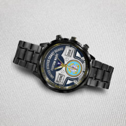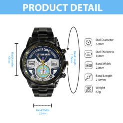 Elevate your Black Stainless Steel Watch with a personal touch by incorporating your custom details like name, rank, and years of service. This unique addition commemorates your military experience in a stylish and meaningful way.