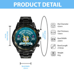 Make your Black Stainless Steel Watch uniquely yours by adding your custom information such as name, rank, and years of service. This personalized detail adds a special touch, celebrating your military journey with elegance and grace.