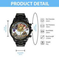 Elevate your Black Stainless Steel Watch with a personal touch by incorporating your custom details like name, rank, and years of service. This unique addition commemorates your military experience in a stylish and meaningful way.