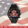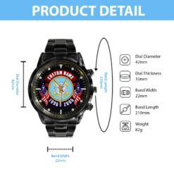 Elevate your Black Stainless Steel Watch with a personal touch by incorporating your custom details like name, rank, and years of service. This unique addition commemorates your military experience in a stylish and meaningful way.