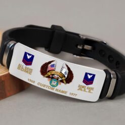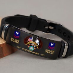 Incorporating an adaptive strap mechanism, the bracelet transcends traditional sizing limitations. It emerges as a profound tribute to veterans, symbolizing dedication, service, and the enduring spirit of patriotism.