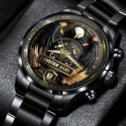 Elevate your Black Stainless Steel Watch with a personal touch by incorporating your custom details like name, rank, and years of service. This unique addition commemorates your military experience in a stylish and meaningful way.