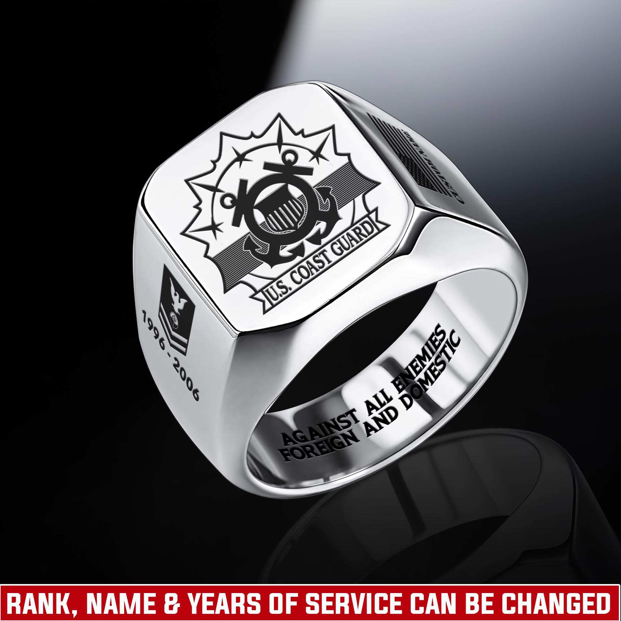 You’re enabled to customize your name, rank, rating, etc. to have them printed on the personalized engraved men’s ring. Transform this piece into a personal memorial of your service and accomplishments.