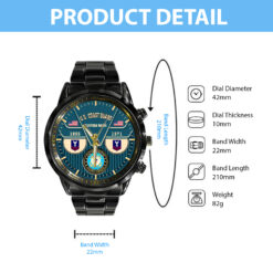 Personalize your Black Stainless Steel Watch with custom engravings of your name, rank, and years of service. This thoughtful addition transforms your watch into a cherished memento, honoring your dedication and commitment to service.