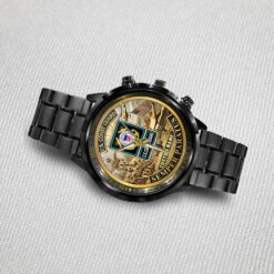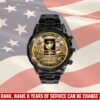 Personalize your Black Stainless Steel Watch with custom engravings of your name, rank, and years of service. This thoughtful addition transforms your watch into a cherished memento, honoring your dedication and commitment to service.