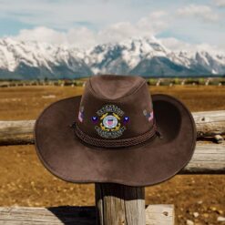 This veteran suede cowboy hat is crafted from premium suede leather construction that delivers exceptional durability and comfort for years of reliable wear. The interior features a soft, breathable fabric lining designed to prevent irritation during extended wear, while high-quality stitching reinforcements at stress points ensure long-lasting performance. A weather-resistant treatment has been applied to protect against moisture and UV damage, and an authentic leather sweatband provides superior moisture absorption and comfort throughout the day.