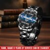 Make your Diamond-Cut Bezel Watch uniquely yours by adding your custom information such as name, rank, and years of service. This personalized detail adds a special touch, celebrating your military journey with elegance and grace.