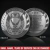 Honor Their Service: customize with veteran’s name, achieved rank, service branch, assigned unit, career specialty, or total years served on both coin faces.