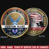 A tradition of honor carried forward. Challenge coins have long represented camaraderie, achievement, and respect within military culture. This personalized coin serves as a tangible reminder of service and sacrifice, perfect for commemorating milestones or showing appreciation to those who’ve answered the call of duty.