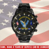 Elevate your Black Stainless Steel Watch with a personal touch by incorporating your custom details like name, rank, and years of service. This unique addition commemorates your military experience in a stylish and meaningful way.