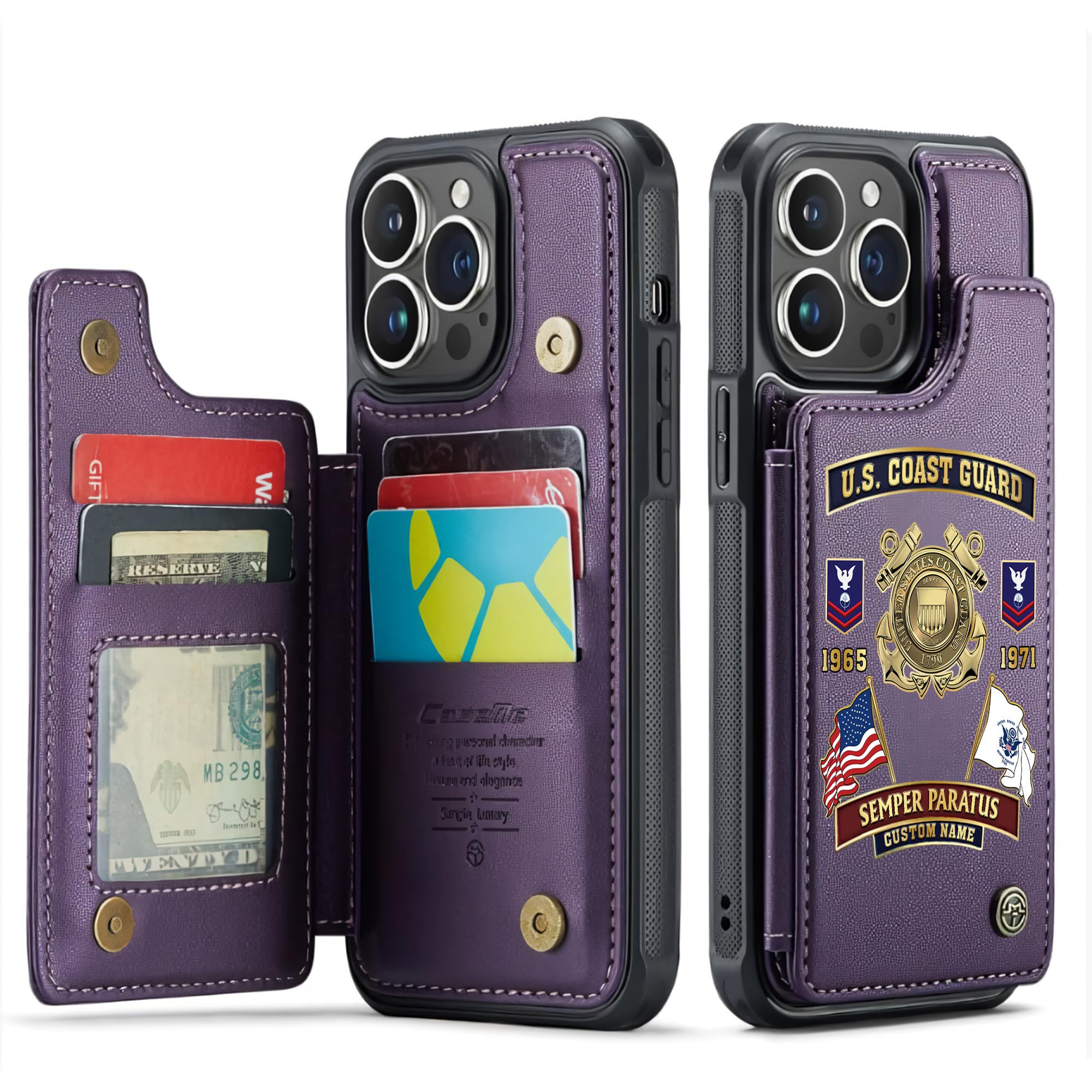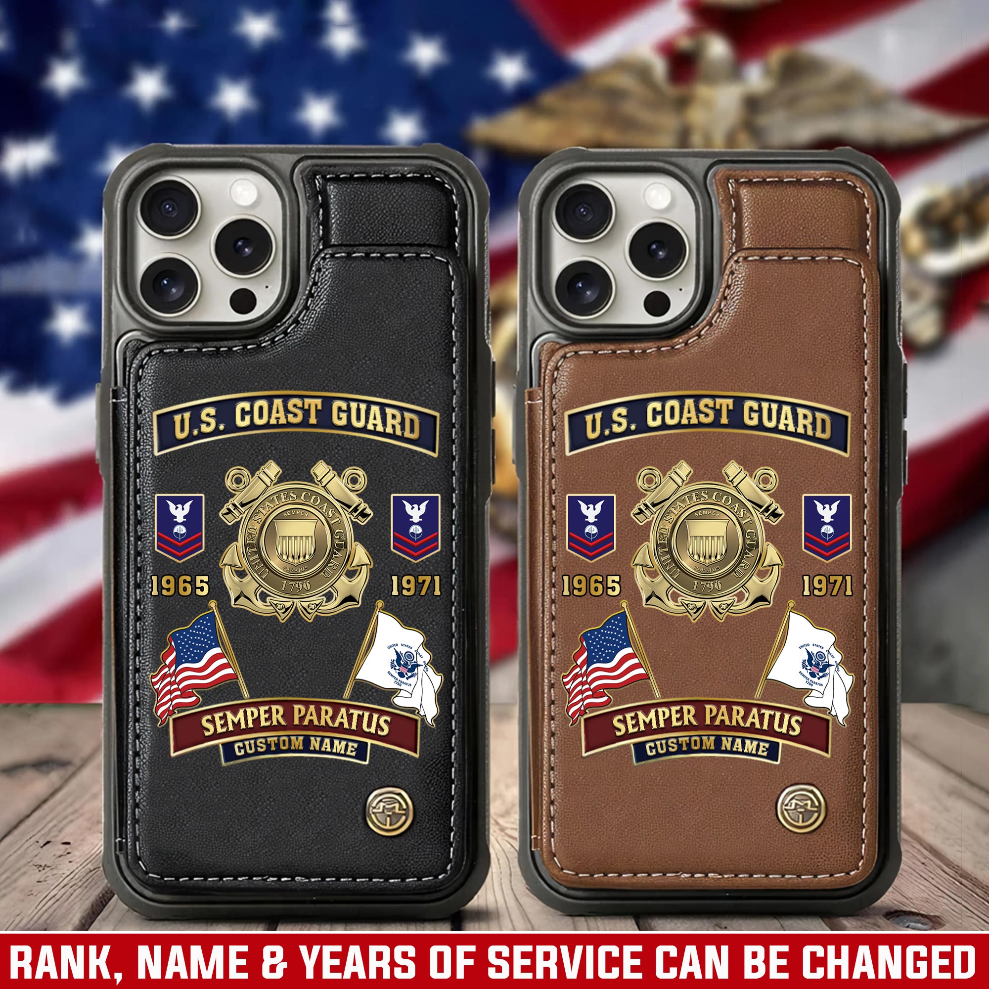 Customize your tribute with our personalized Leather Flip Phone Case. Add your name, rank, years of service, and more to create a unique item that honors your dedication.