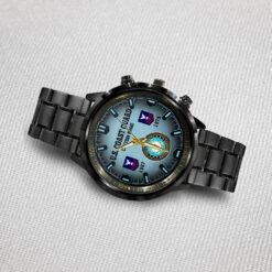 Express your unwavering support and admiration for a service member or veteran in your life with our Black Stainless Steel Watch. Whether presented on Veterans Day, retirement, or any occasion honoring military service, this watch stands as a testament to their unwavering dedication and is sure to be treasured for years to come.