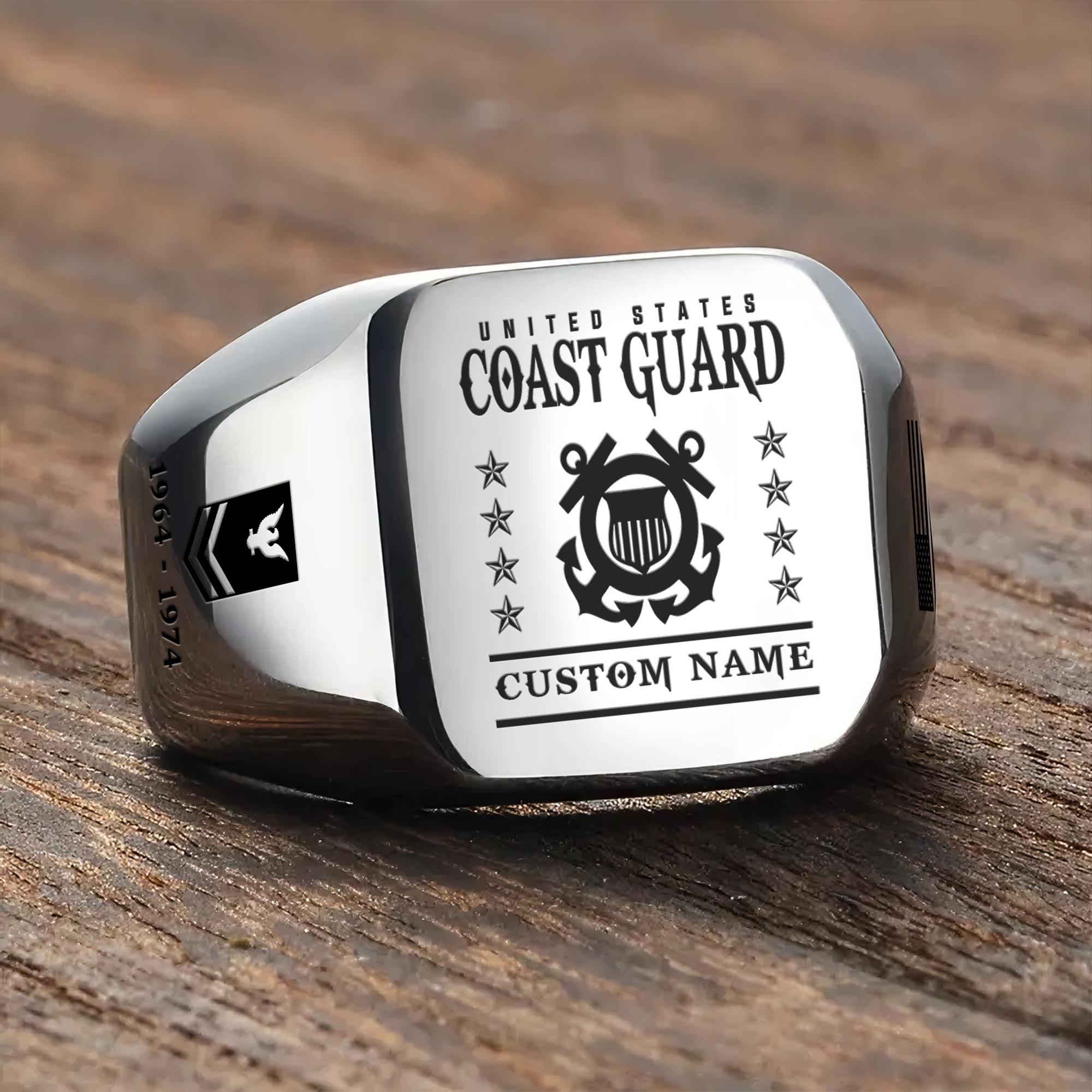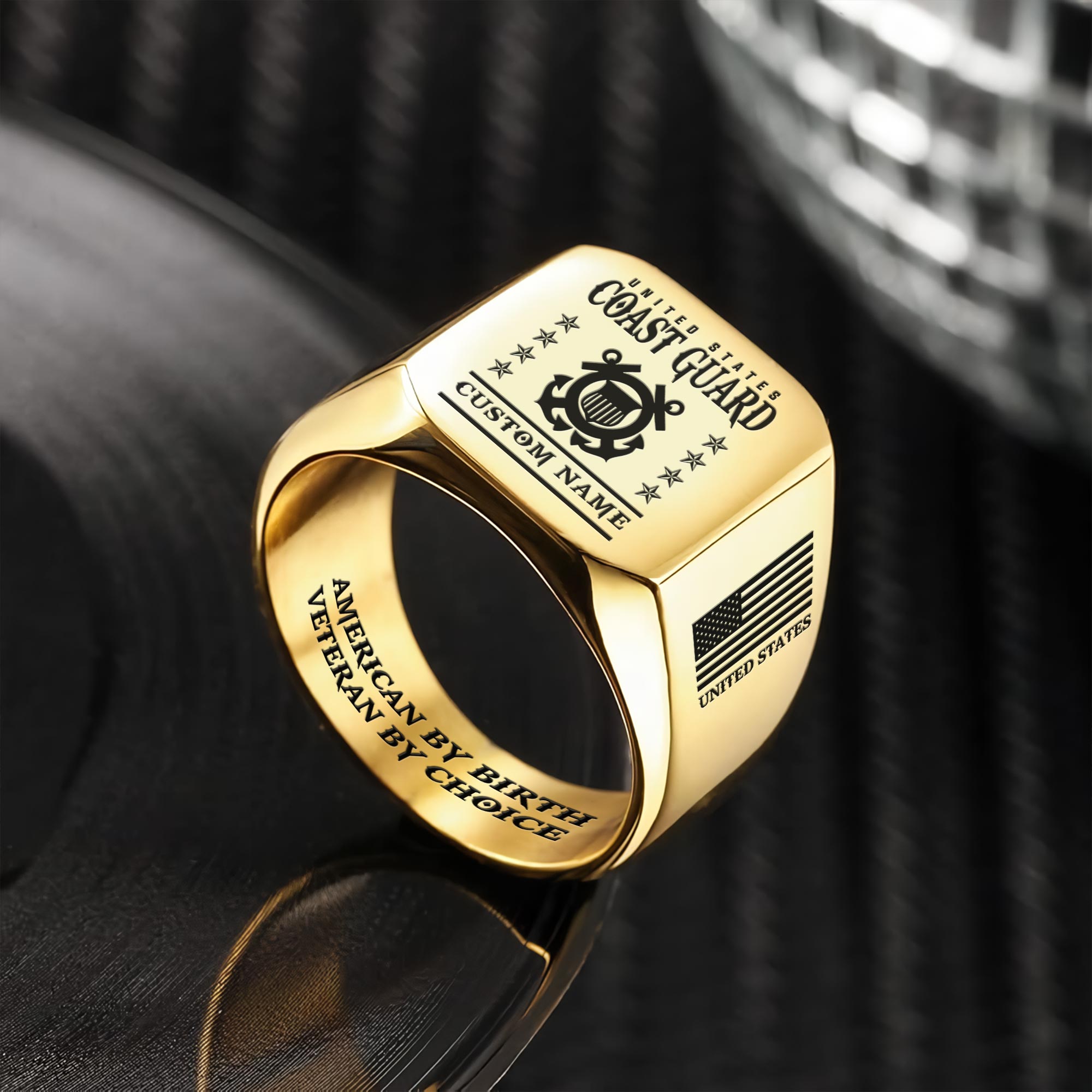 US Coast Guard, Proud Veteran – Engraved Men’s Ring