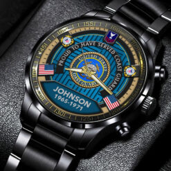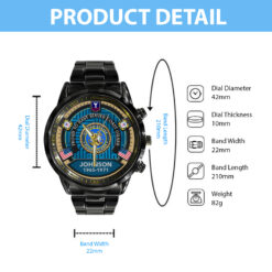 Personalize your Black Stainless Steel Watch with custom engravings of your name, rank, and years of service. This thoughtful addition transforms your watch into a cherished memento, honoring your dedication and commitment to service.