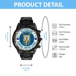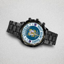 Elevate your Black Stainless Steel Watch with a personal touch by incorporating your custom details like name, rank, and years of service. This unique addition commemorates your military experience in a stylish and meaningful way.