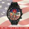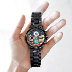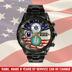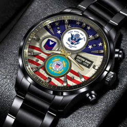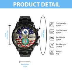 Make your Black Stainless Steel Watch a reflection of your personal journey by including custom details like your name, rank, and years of service. This personalized feature not only adds a touch of elegance but also serves as a timeless tribute to your dedicated service to our country.