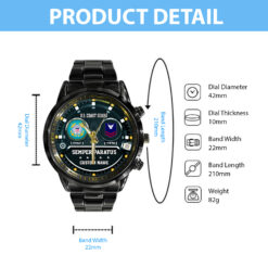 Elevate your Black Stainless Steel Watch with a personal touch by incorporating your custom details like name, rank, and years of service. This unique addition commemorates your military experience in a stylish and meaningful way.