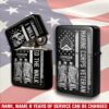 Designed with steadfast durability in mind, this engraved lighter stands as a daily reminder of service and sacrifice. The graphics—etched into both sides with precision—remain sharp and unyielding, even after repeated use. Whether carried as a daily companion or gifted as a token of respect, it symbolizes unwavering duty and deep-rooted pride.
