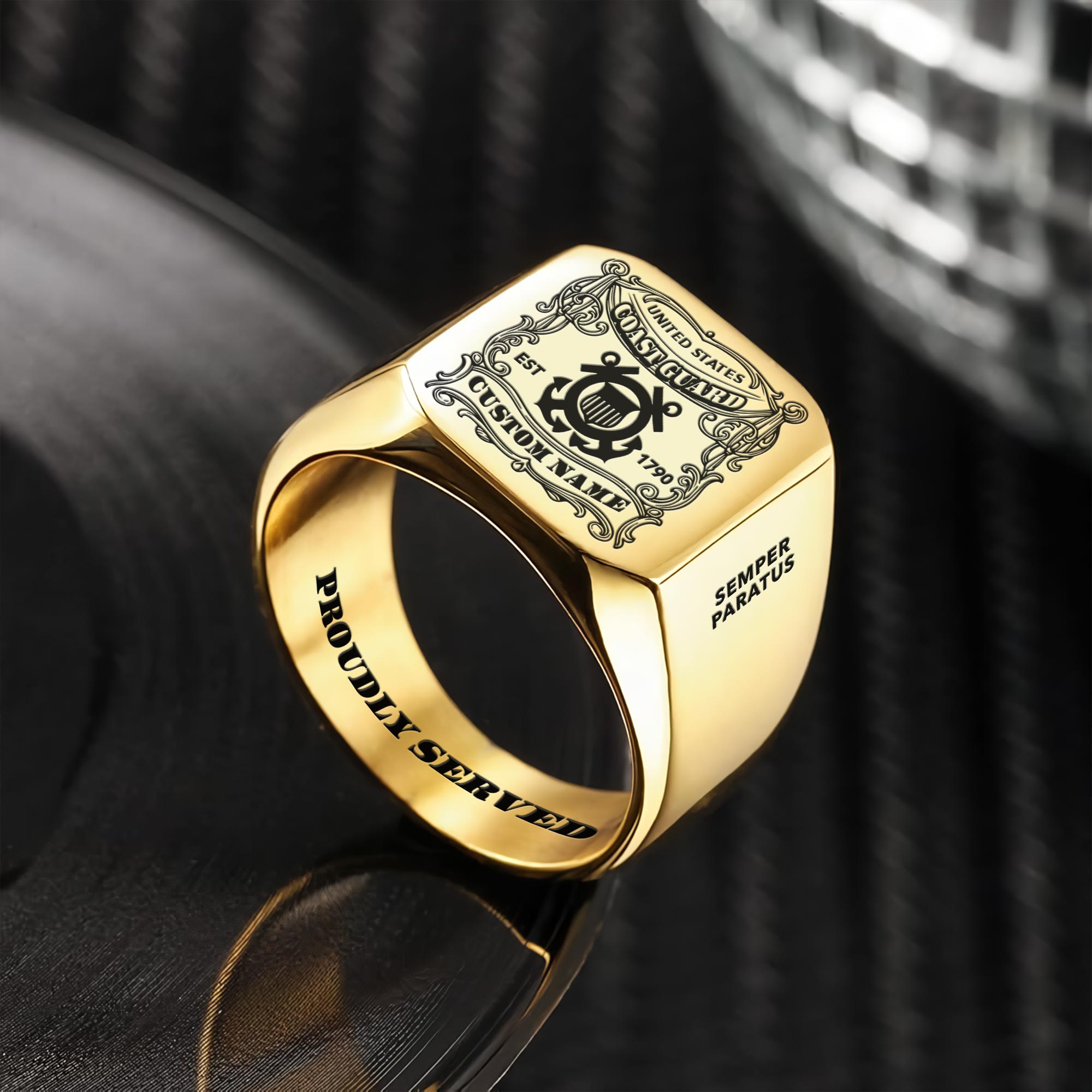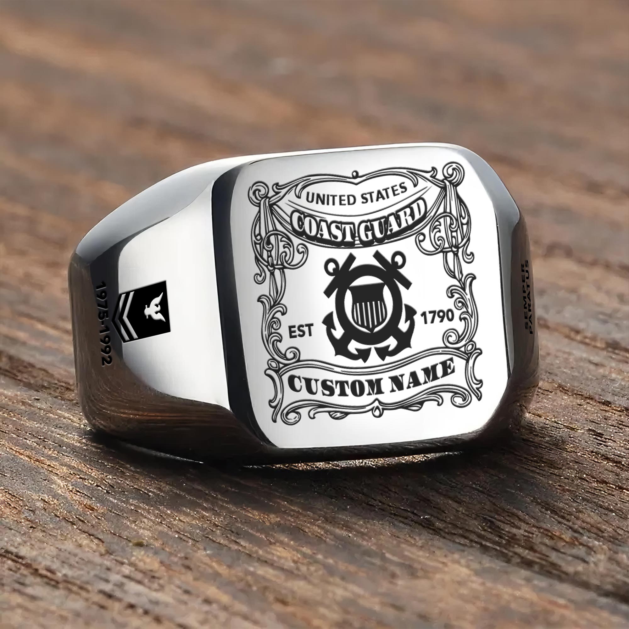 US Coast Guard, Semper Paratus – Engraved Men’s Ring
