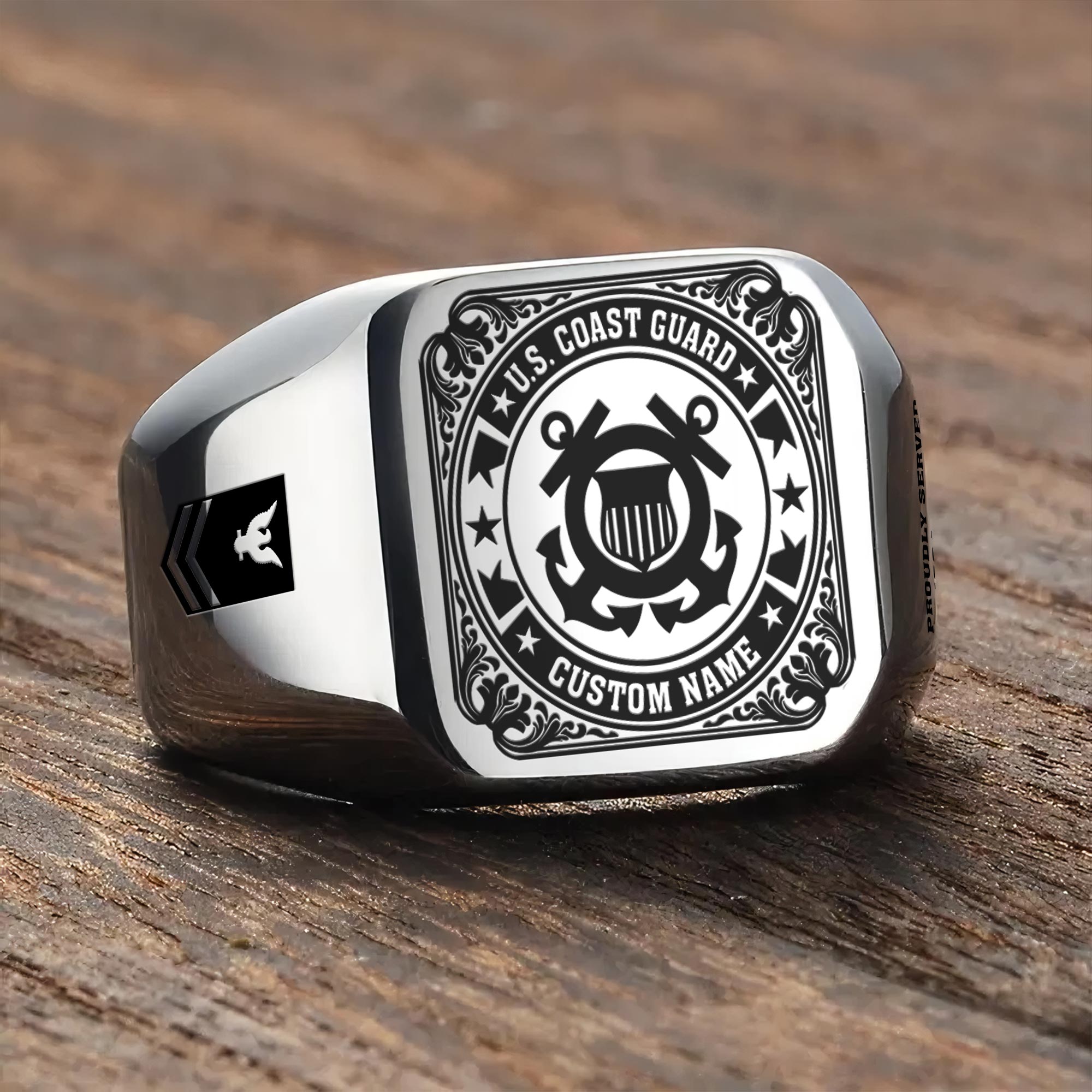 You’re enabled to customize your name, rank, rating, etc. to have them printed on the personalized engraved men’s ring. Make it uniquely yours by incorporating elements that celebrate your military identity and legacy.