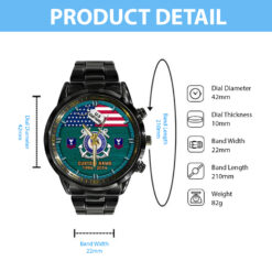 Make your Black Stainless Steel Watch uniquely yours by adding your custom information such as name, rank, and years of service. This personalized detail adds a special touch, celebrating your military journey with elegance and grace.
