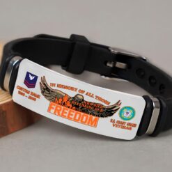 Incorporating an adaptive strap mechanism, the bracelet transcends traditional sizing limitations. It emerges as a profound tribute to veterans, symbolizing dedication, service, and the enduring spirit of patriotism.