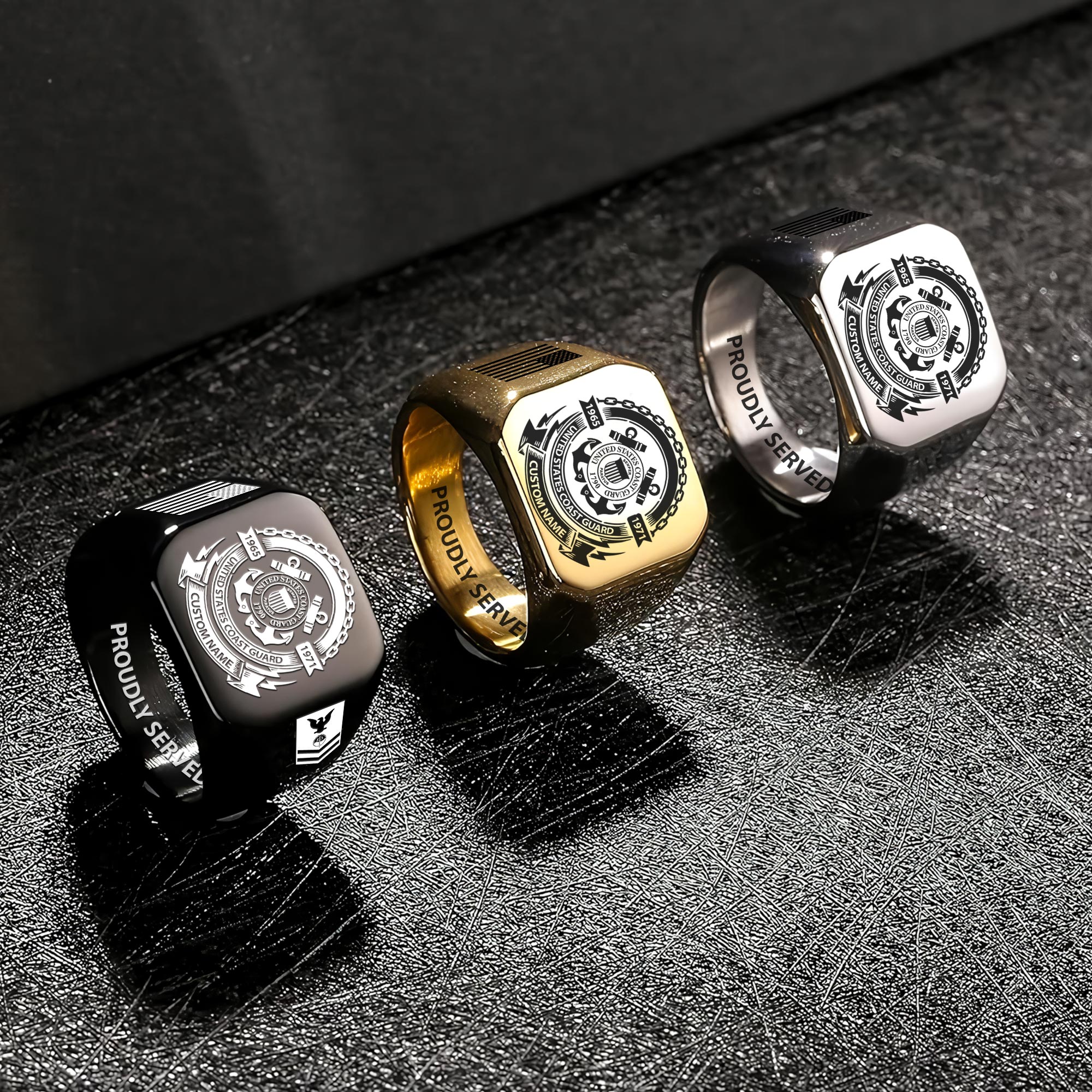 Offered in three stunning finishes – Silver, Gold, and Black – this ring caters to every personal style preference. More than just jewelry, these rings serve as a meaningful tribute to military service, symbolizing dedication and valor.