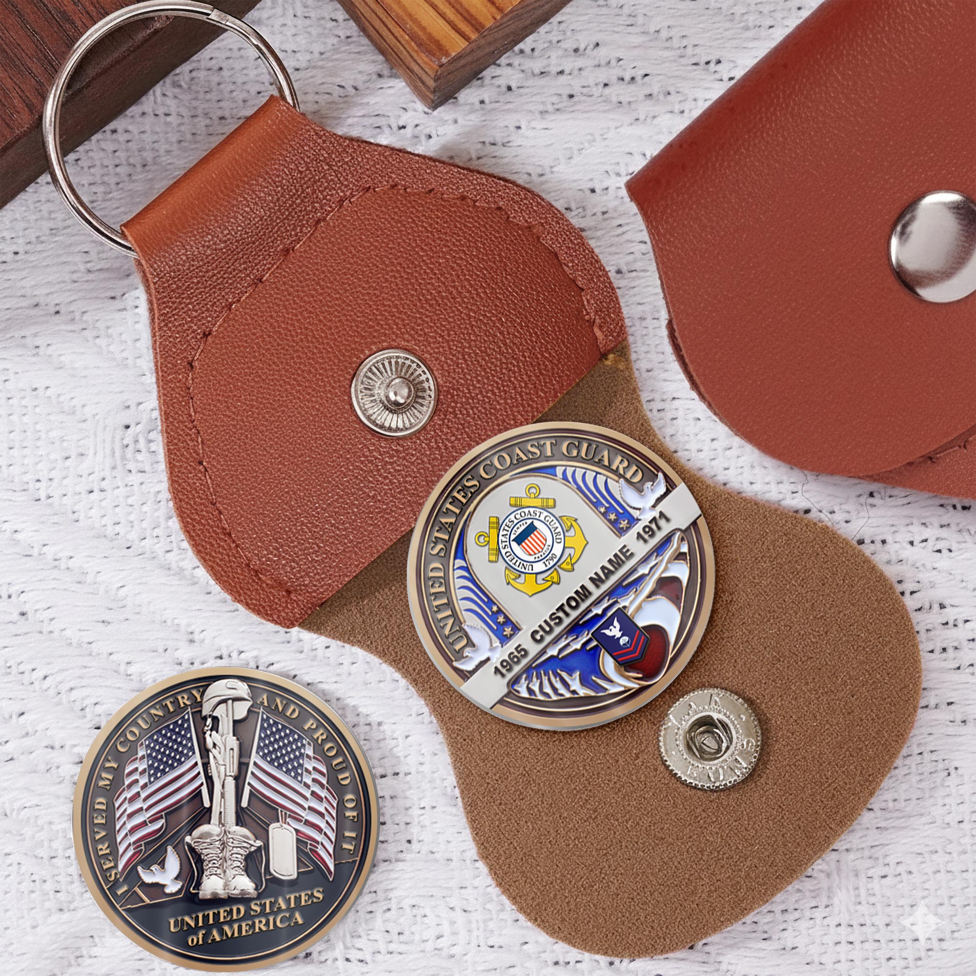The Military Commemorative Challenge Coin showcases exceptional craftsmanship with detailed printings on both sides of solid stainless steel. Protected in a quality PU leather case with secure snap fastener, this coin honors military heritage and individual achievement.
