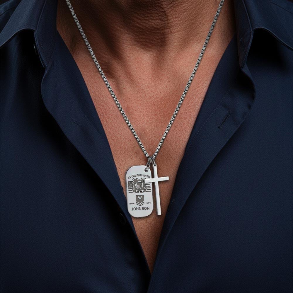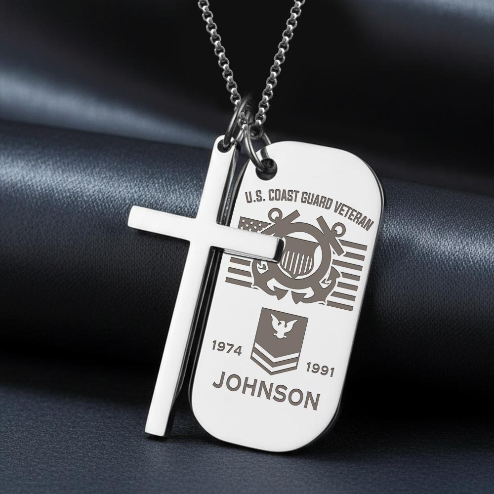 US Coast Guard – Silver Engraved Two Pieces Cross Dog Tag
