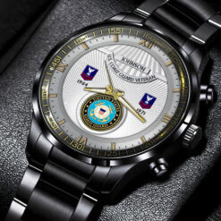 Make your Black Stainless Steel Watch uniquely yours by adding your custom information such as name, rank, and years of service. This personalized detail adds a special touch, celebrating your military journey with elegance and grace.