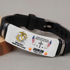 Incorporating an adaptive strap mechanism, the bracelet transcends traditional sizing limitations. It emerges as a profound tribute to veterans, symbolizing dedication, service, and the enduring spirit of patriotism.