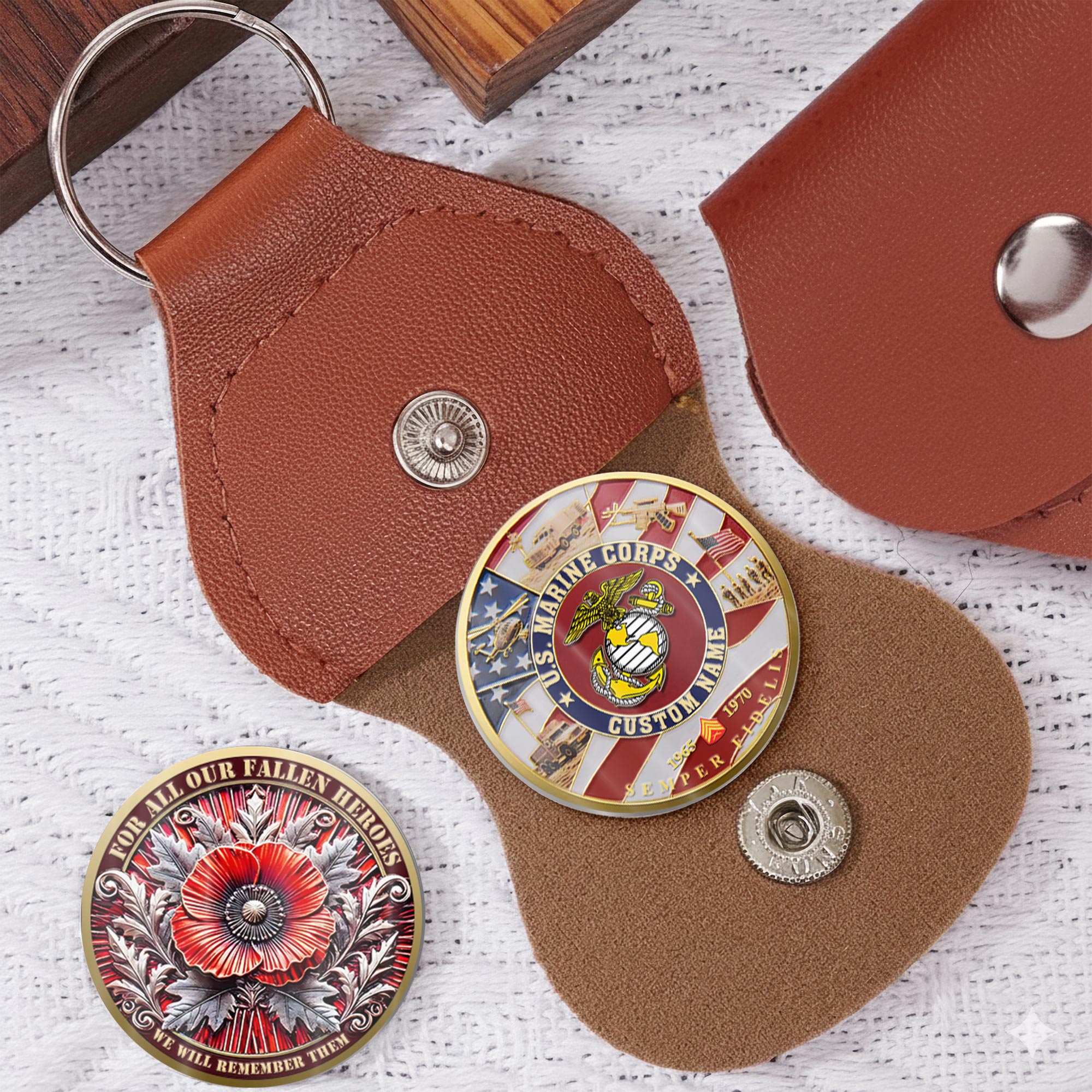 The Military Commemorative Challenge Coin showcases exceptional craftsmanship with detailed printings on both sides of solid stainless steel. Protected in a quality PU leather case with secure snap fastener, this coin honors military heritage and individual achievement.