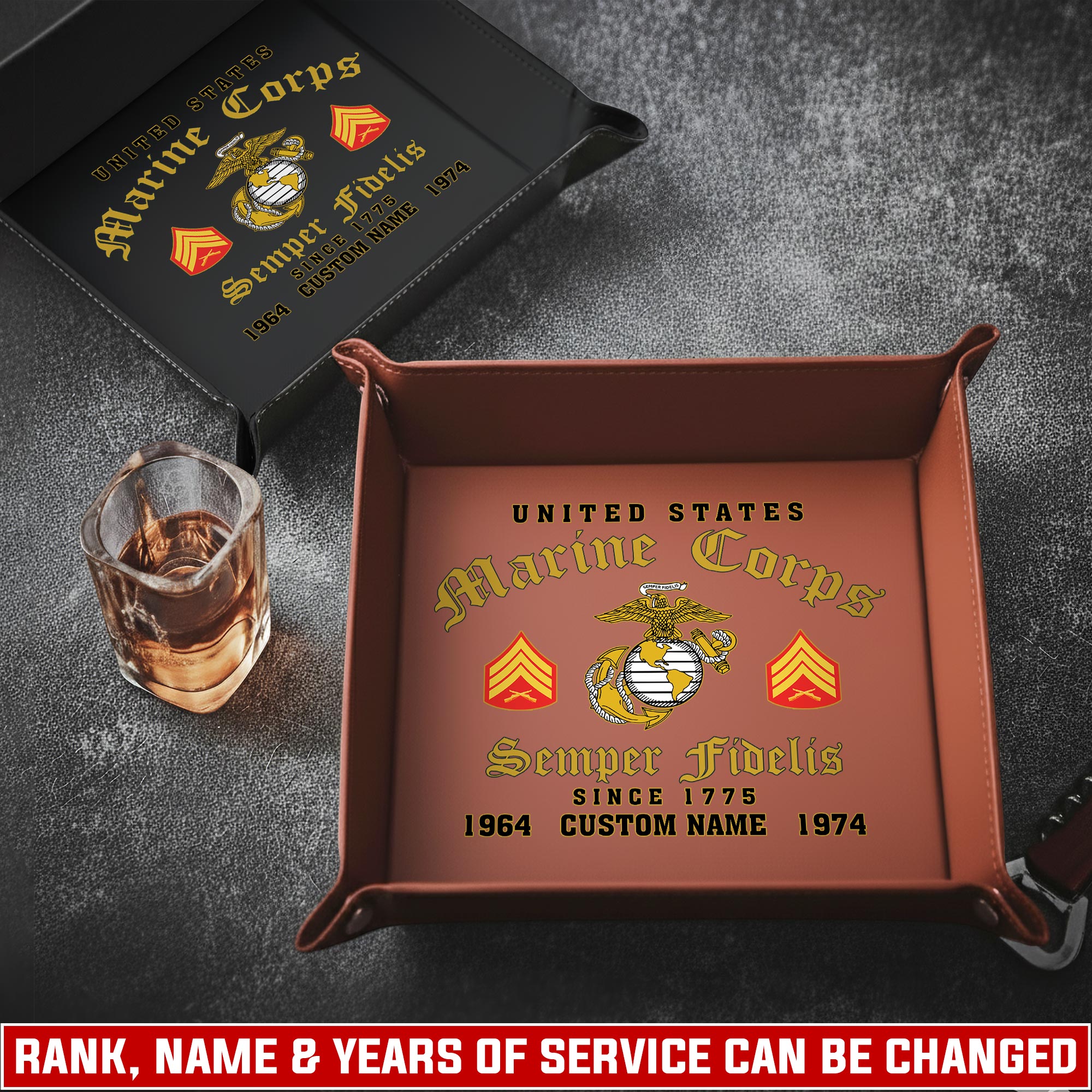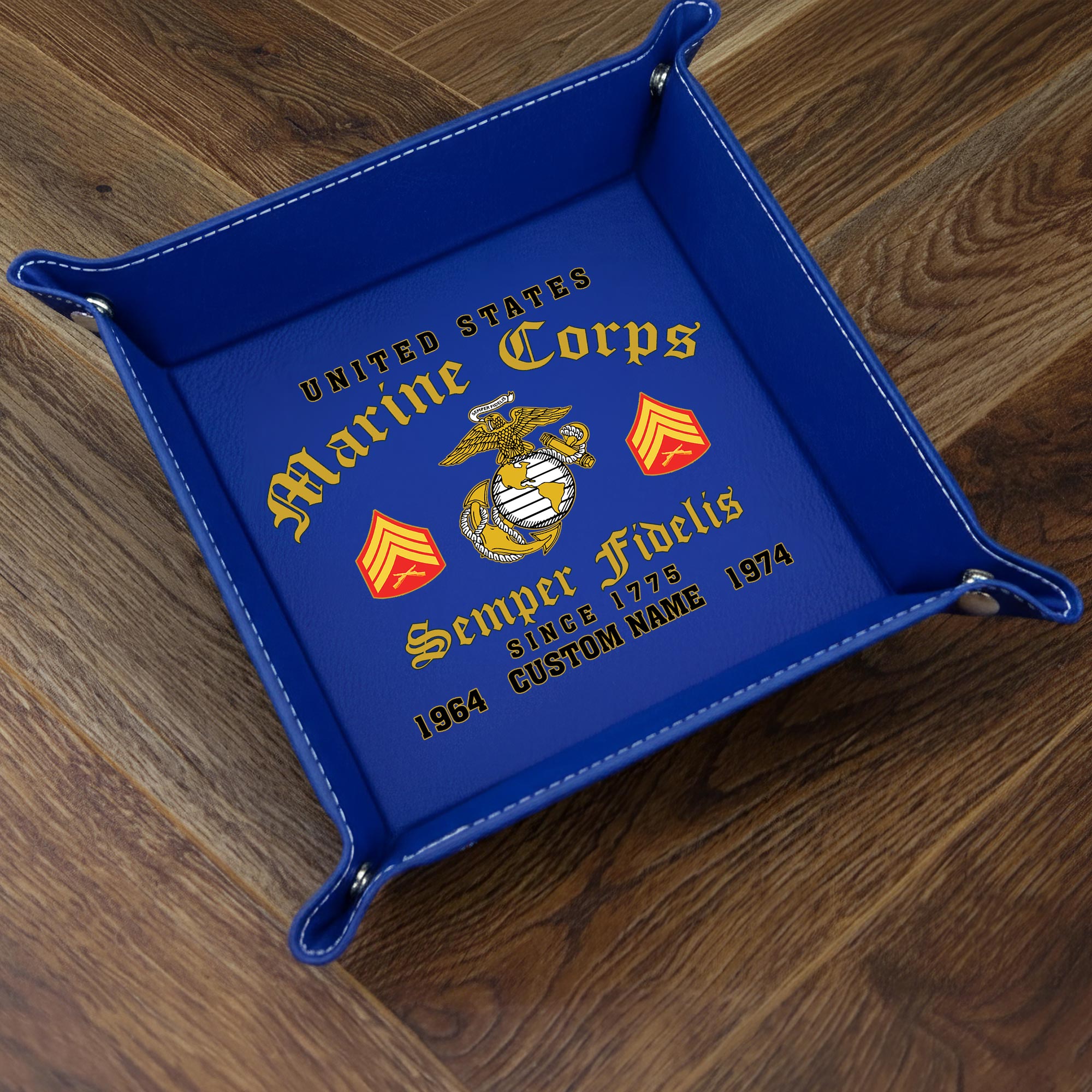 US Marine Corps, Always Remember, Never Forget – Personalized Leather Valet Tray