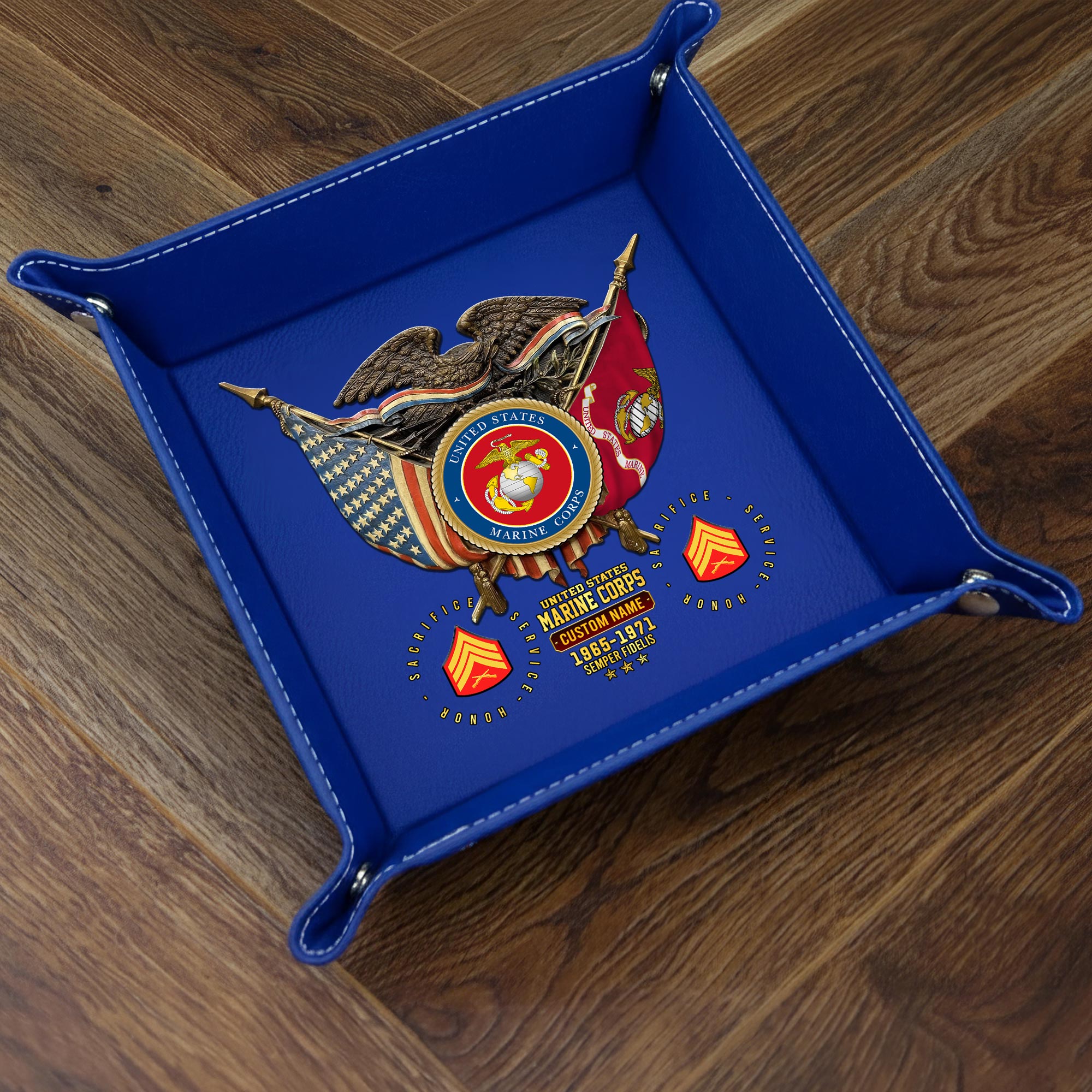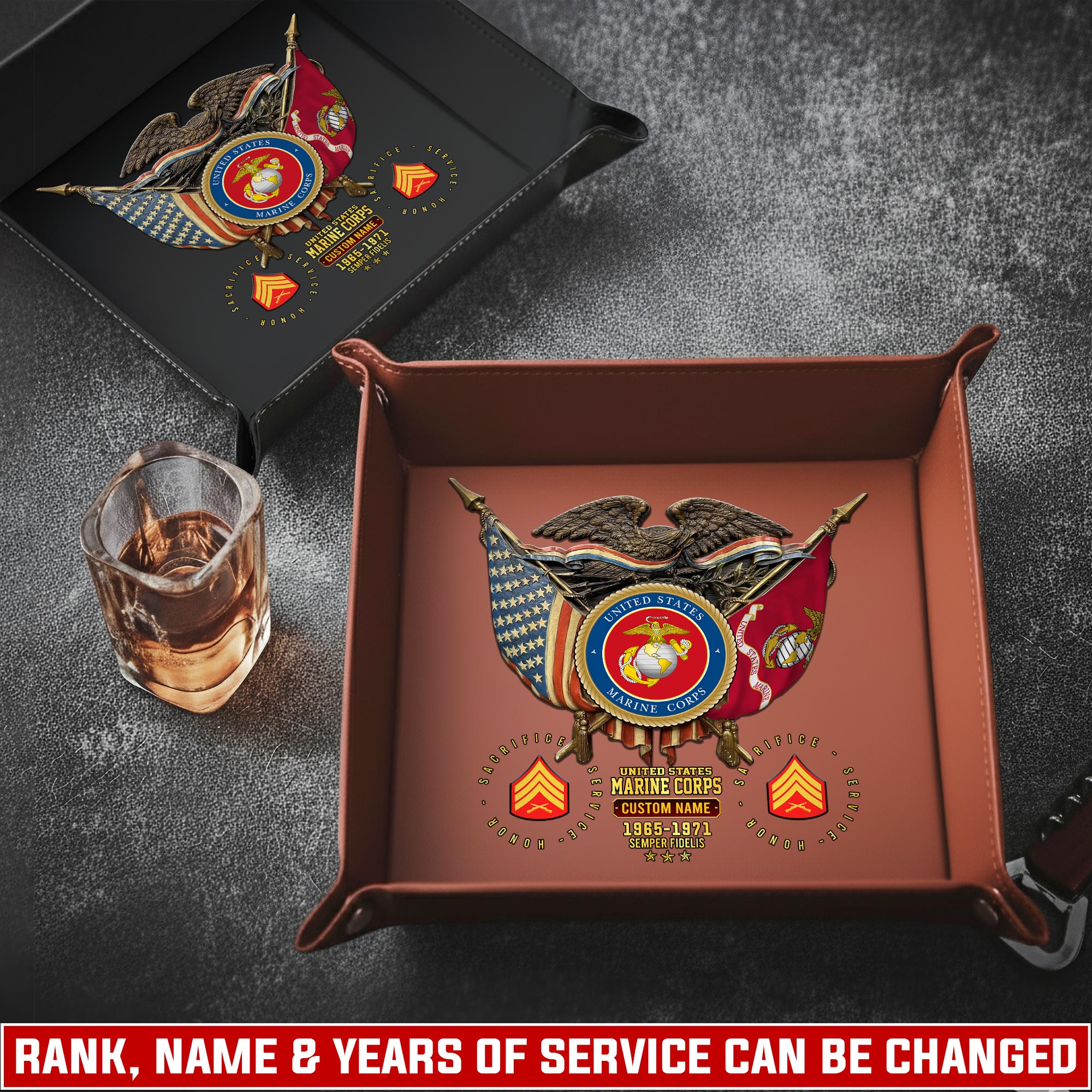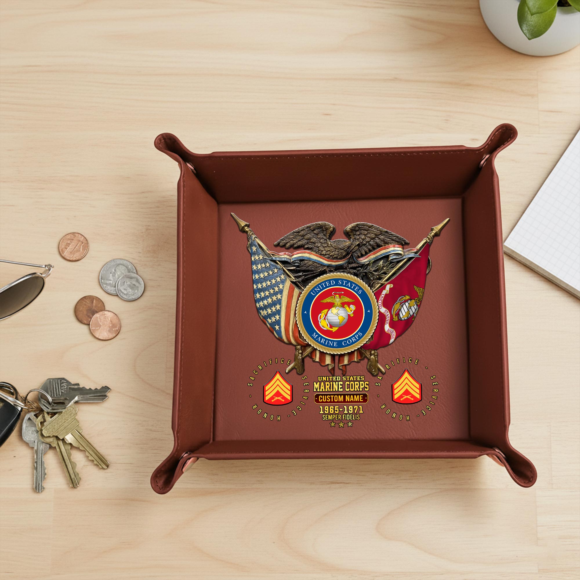 US Marine Corps, American By Birth, Veteran By Choice – Personalized Leather Valet Tray