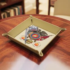 Designed with practicality in mind, this Veteran Personalized Leather Valet Tray features generous 7.5″ x 7.5″ outer dimensions and a 1.75″ profile that accommodates various items comfortably. The 6″ x 6″ personalization zone provides substantial space for custom veteran designs, complemented by decorative silver snaps positioned at each corner for structural integrity. Constructed entirely from high-quality durable vegan leather, this tray represents a perfect blend of sustainability and sophistication.