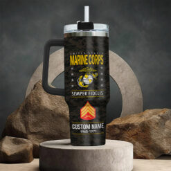 Make a statement with our personalized tumbler selections, designed to honor veterans with custom ranks, names, and personalized details for a truly special touch.