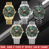 Make your Diamond-Cut Bezel Watch a reflection of your personal journey by including custom details like your name, rank, and years of service. This personalized feature not only adds a touch of elegance but also serves as a timeless tribute to your dedicated service to our country.