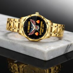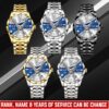 Make your Diamond-Cut Bezel Watch a reflection of your personal journey by including custom details like your name, rank, and years of service. This personalized feature not only adds a touch of elegance but also serves as a timeless tribute to your dedicated service to our country.