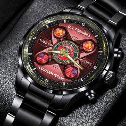 Elevate your Black Stainless Steel Watch with a personal touch by incorporating your custom details like name, rank, and years of service. This unique addition commemorates your military experience in a stylish and meaningful way.