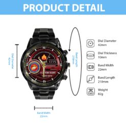 Make your Black Stainless Steel Watch uniquely yours by adding your custom information such as name, rank, and years of service. This personalized detail adds a special touch, celebrating your military journey with elegance and grace.
